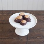 - Place the finished buckeye onto the second prepared baking sheet. Remove toothpick and smooth over the hole. Refrigerate until buckeyes are firm.